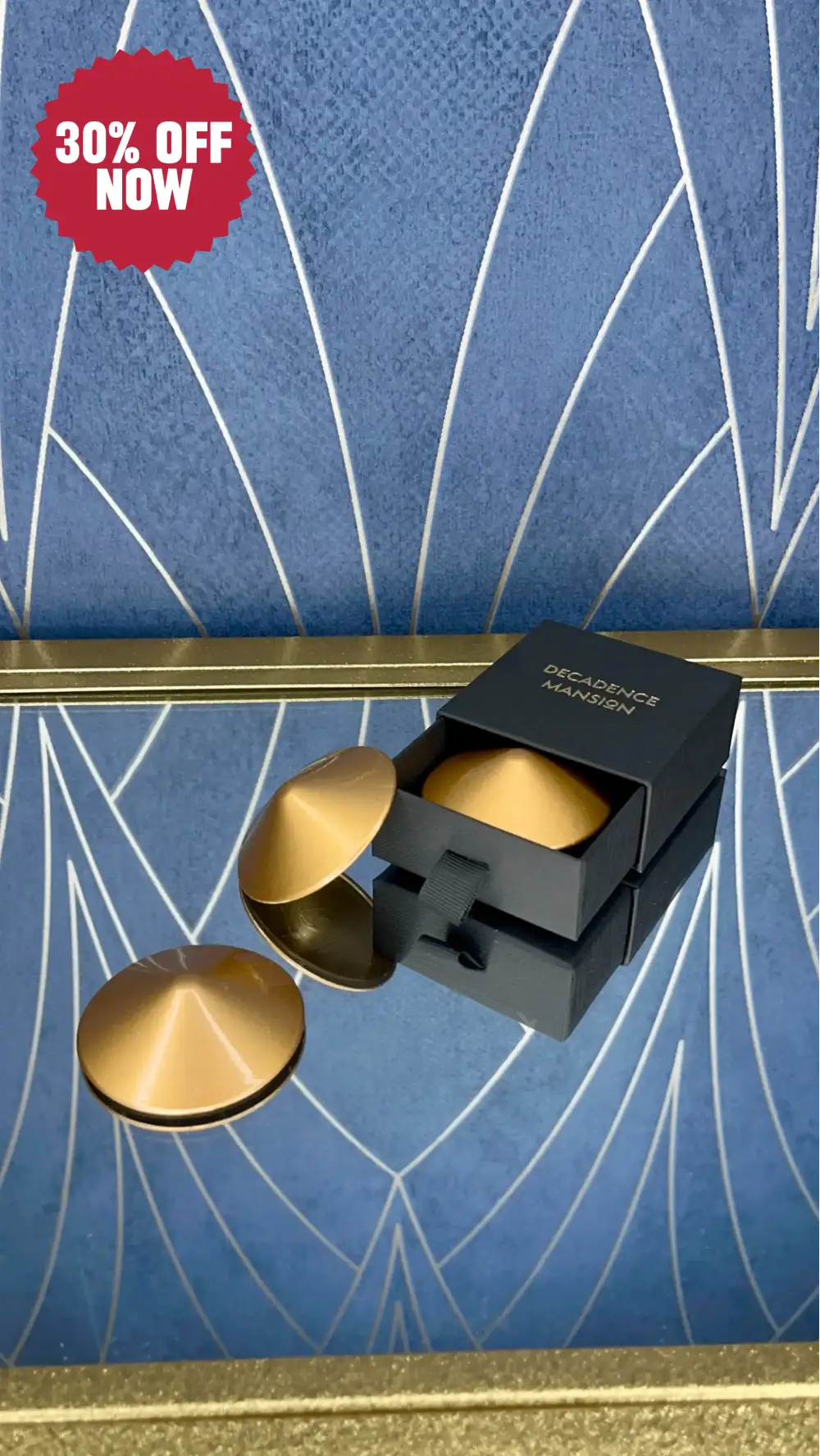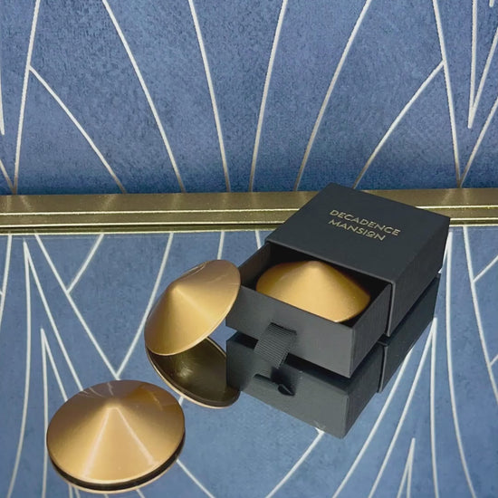 These gold pasties are not just accessories. They are provocation made tangible. Gleaming against bare skin or peeking through mesh lingerie, they command attention whether styled or worn with nothing at all. Presented in a decadent display box for the ultimate gift of temptation, each pair comes with adhesive strips for an unforgettable wear.