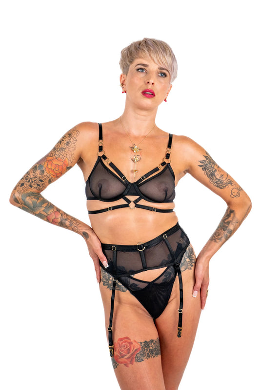 Experience perfection in every detail with our premium lingerie collection. Our meticulously designed pieces offer a flawless fit. Every golden slider invites control. Adjust, tighten, release. Each strap responds to your body’s command, gripping with the slow precision of a lover who knows exactly where to hold.